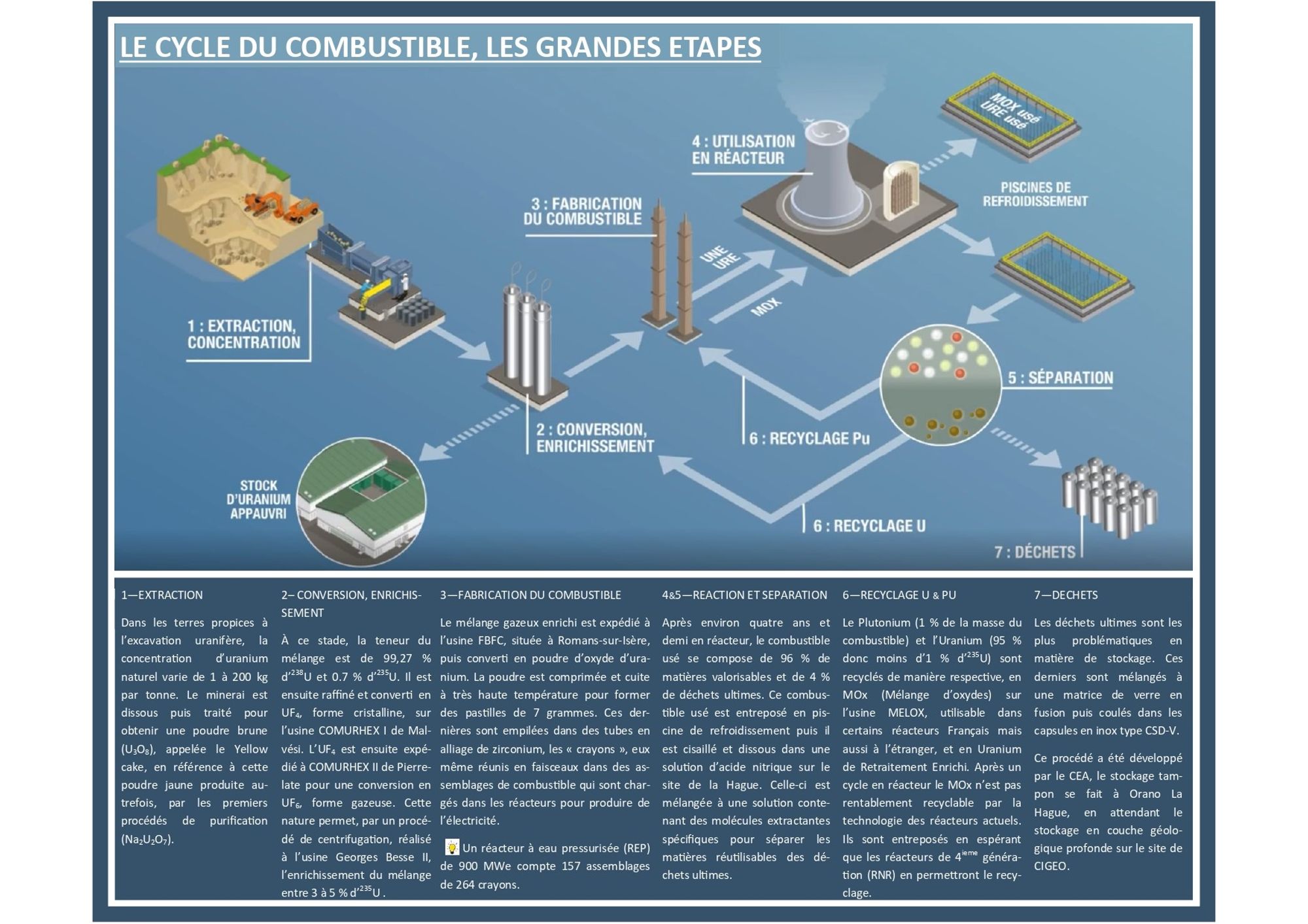 Alors venez découvrir le cycle de vie du combustible, grâce à cette infographie réalisée par le groupe de projet tutoré SFEN !