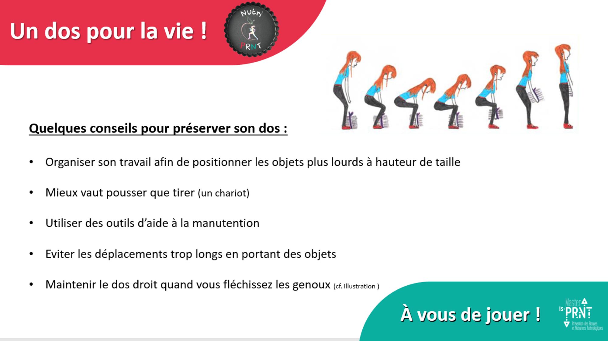 Le groupe Nutri-PRNT vous propose une sensibilisation sur le port de charge et la préservation de votre dos :