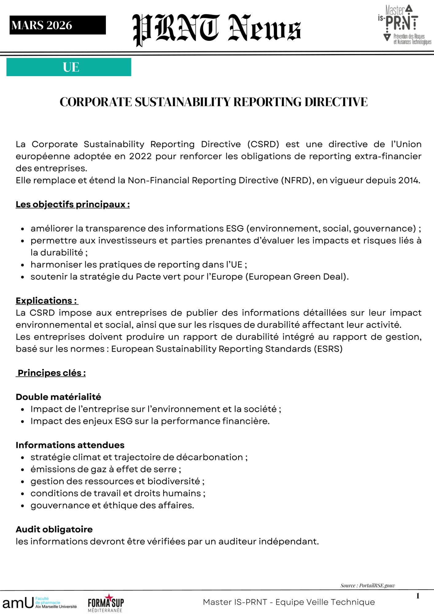 Projet tutoré : Veille Réglementaire mars 2026